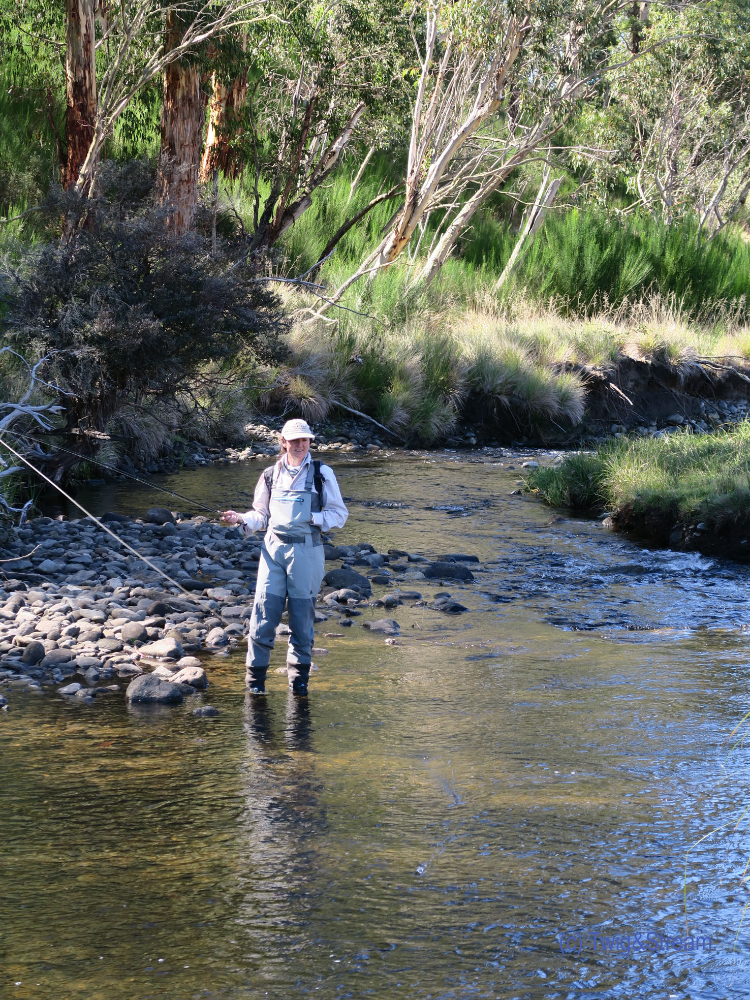 Previous Image Next Image IMG_2200 Making a roll cast Learning to fly fish. A woman is fly fishing for trout in the Victorian High Country, Australia